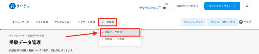 2.「受験データ一覧」から「問題グループ得点分析」をクリック