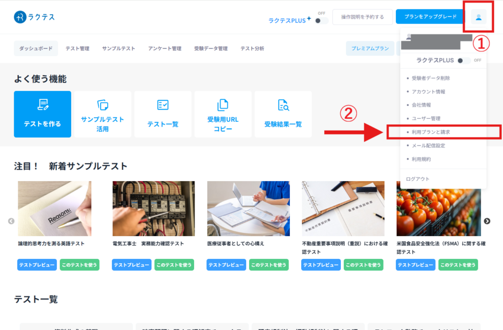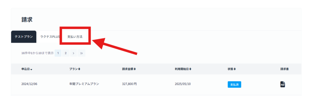 1.ラクテス「利用プランと請求」画面を開く
