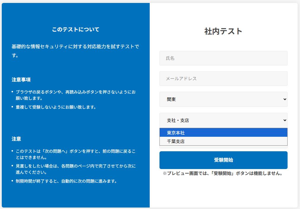 社内テストの入力項目例